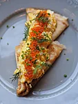 Tatrajahu pliinid, hapukoor, maitseroheline, värske forellimari (100g), soolalõhe (100g)