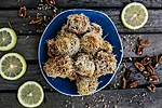 15tk kataifi hiidkrevetid, 15tk kataifi kana ampsud, 10tk kataifi portobello seened, 10tk kataifi taignas nopri praejuust, chillimajonees, yuzu-teriyaki kaste, trühvlimajonees
