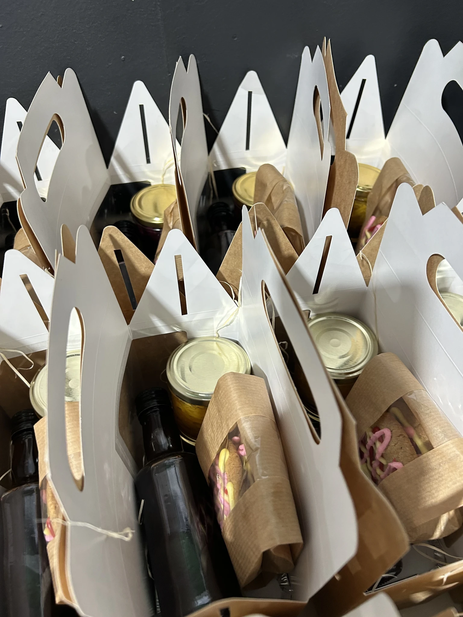 Kõik kinkekomplekti kuuluvad tooted on valmistatud kohapeal, algusest lõpuni, kasutades kvaliteetseid tooraineid ja meie tuntud retsepte. Kõik on värskelt tehtud ning sama hoolikalt ja pühendunult, nagu meie restoranis pakutav toit.