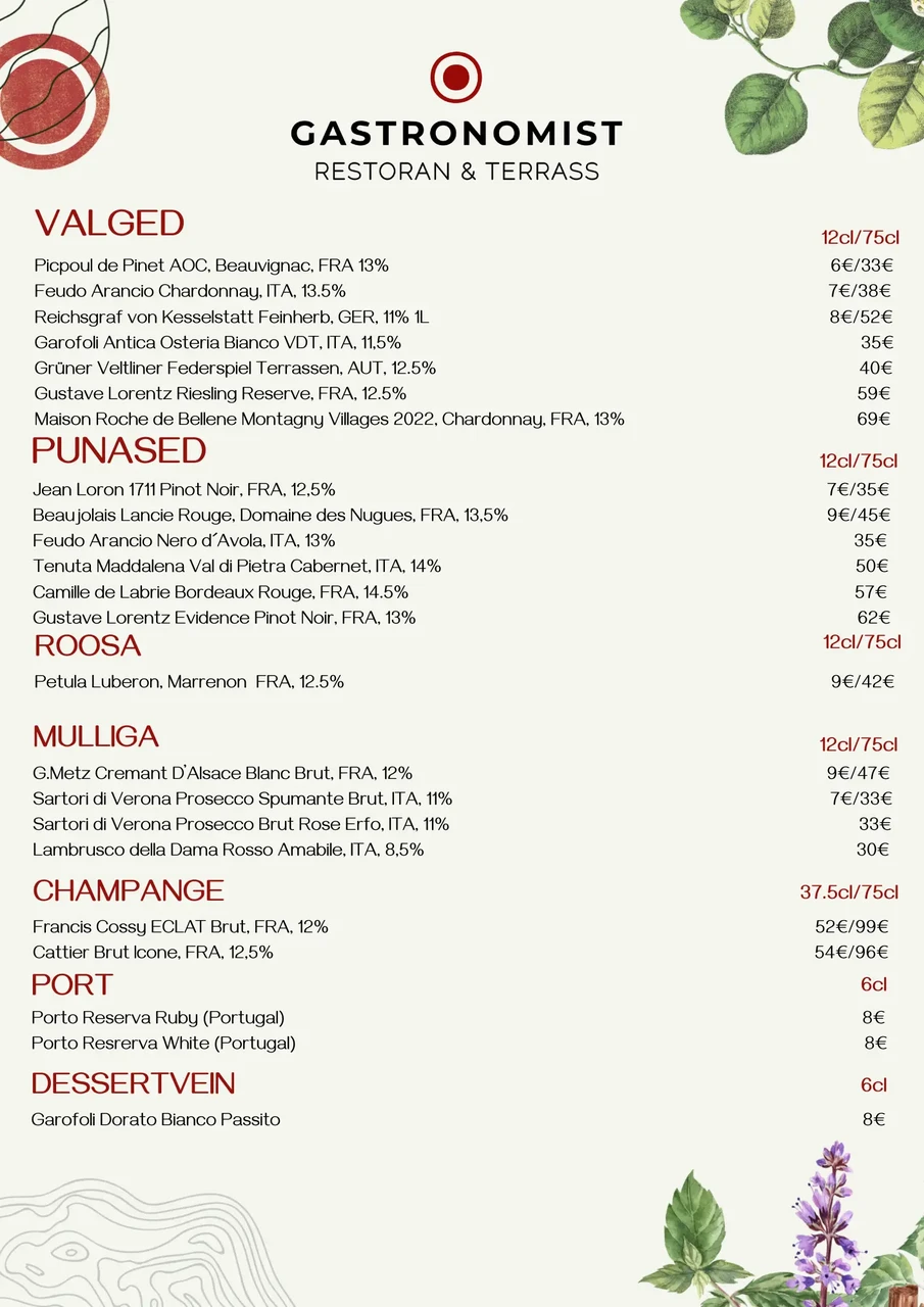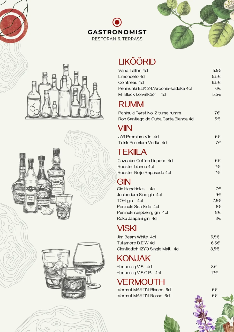 RESTORANI SUUPISTE/KÜLMA LAUA MENÜÜD