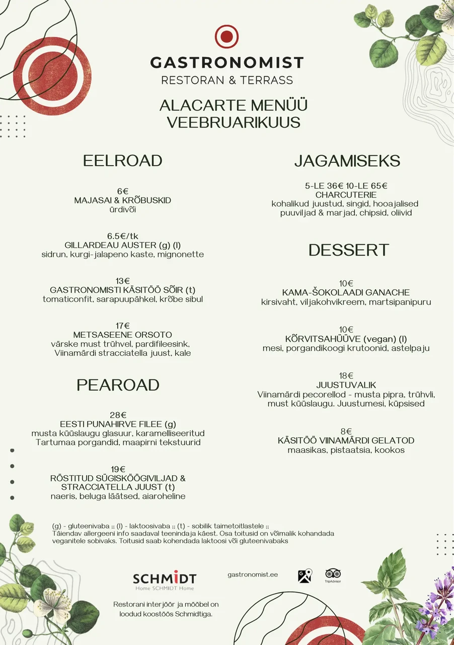 (veebruaris on meil lühendatud a'la carte menüü)